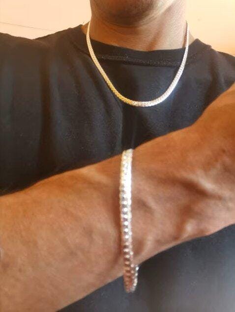 „Ich war überrascht, wie massiv und edel die Kette aussieht. Das Silber glänzt wirklich schön und fühlt sich hochwertig an – kein Vergleich zu Modeschmuck. Trage sie täglich.“